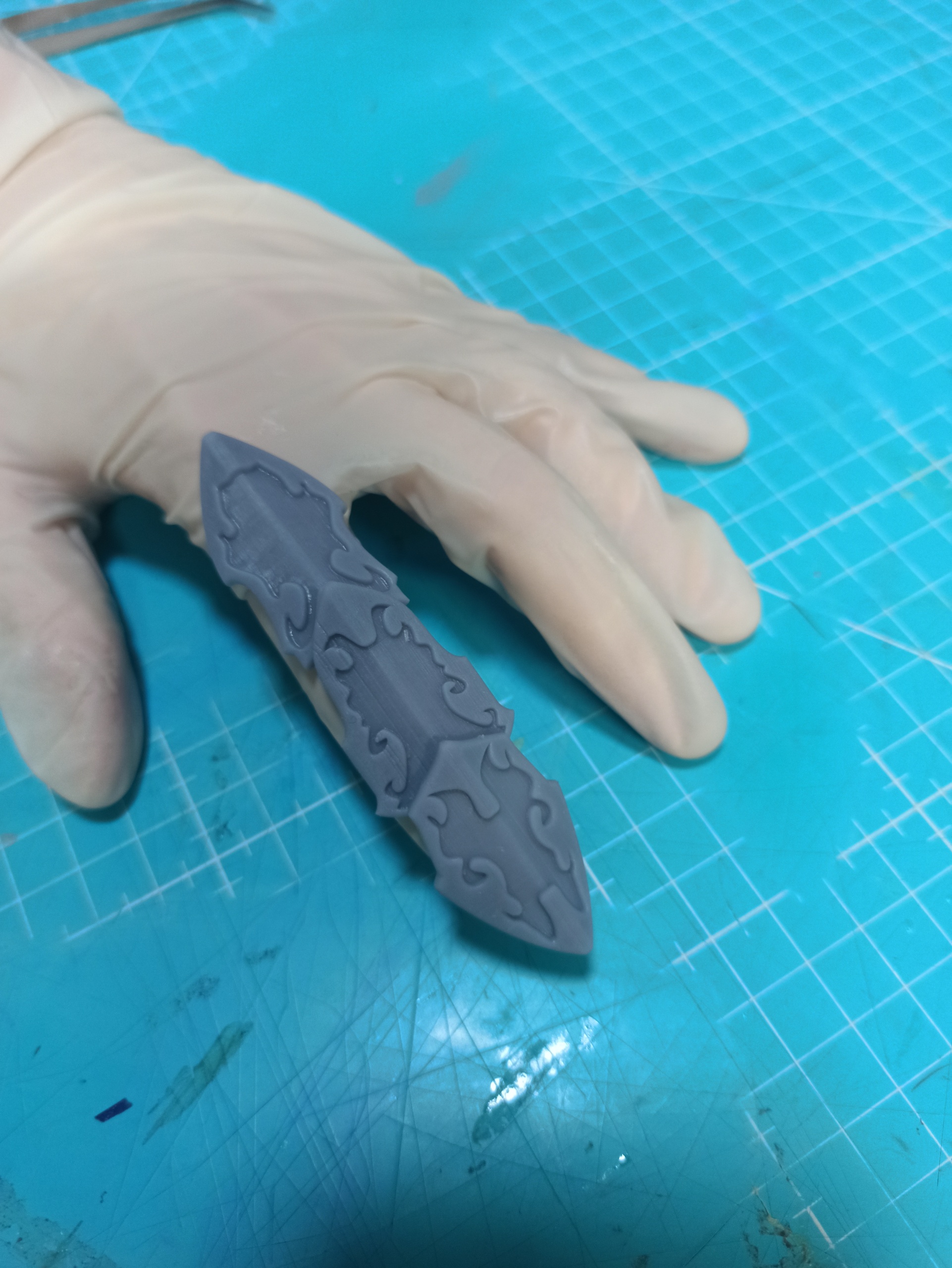 La armadura del dorso de la mano est谩 hecha con goma eva de 2mm de grosor y adornos impresos en resina.