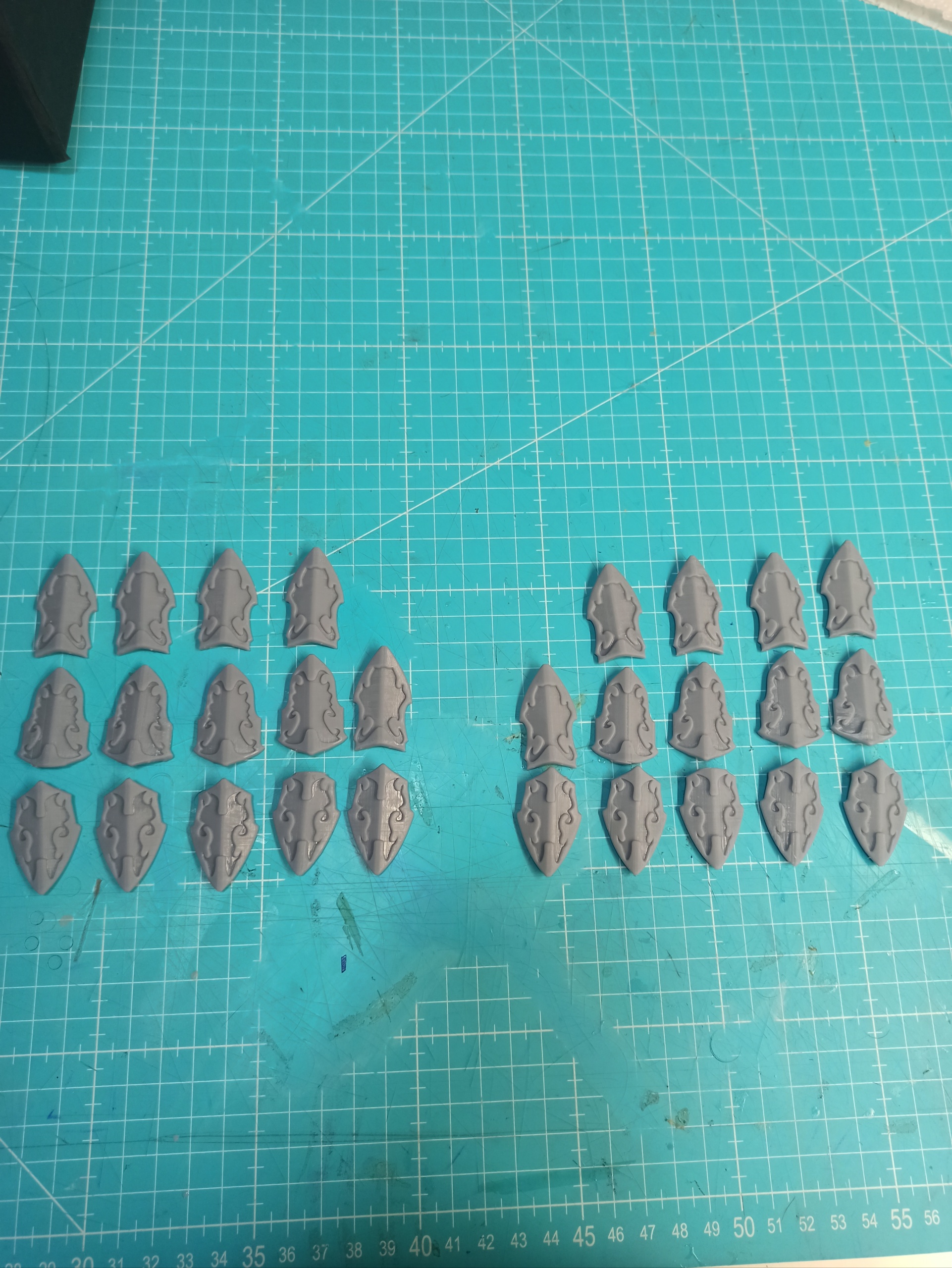 Como las armaduras de lo muslos de Aylin tienen ese aspecto fino y muy pegado a la pierna, directamente, los dise帽茅 para ser pegados en la cota de escamas.