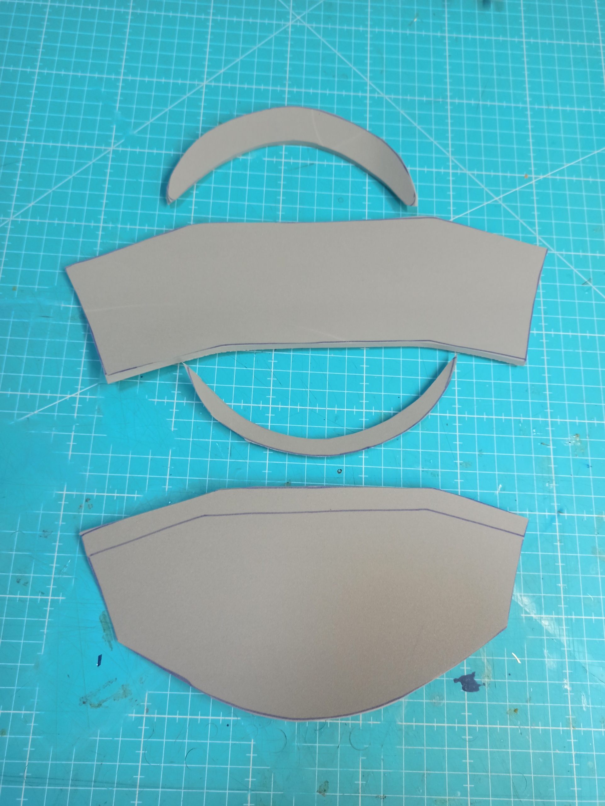 Como las piezas frontales del casco son finas, les a帽ad铆 Worbla por dentro para dotarlas de rigidez.
