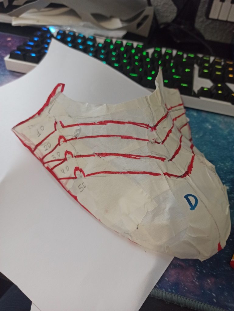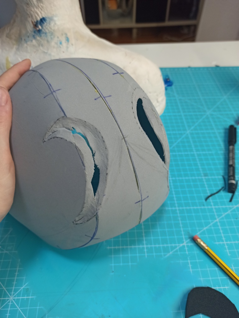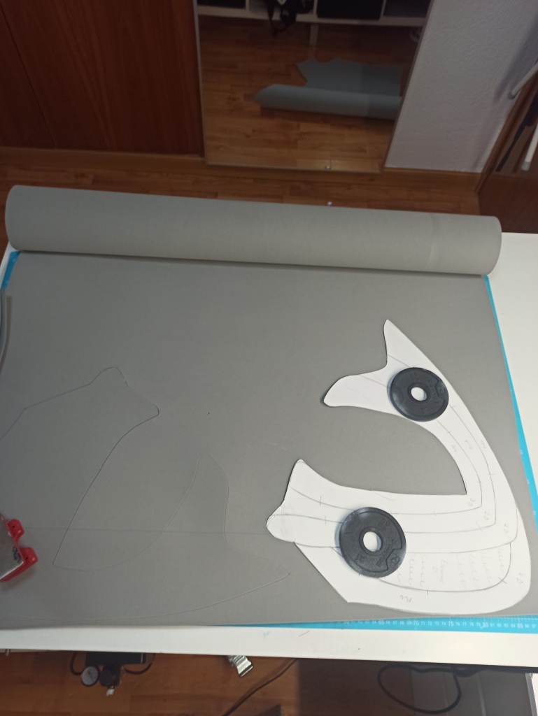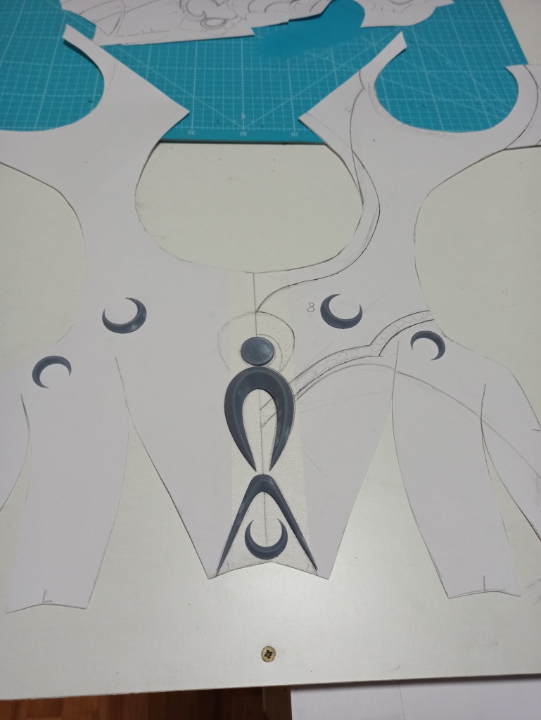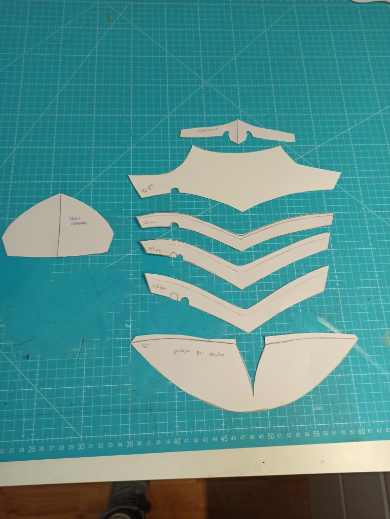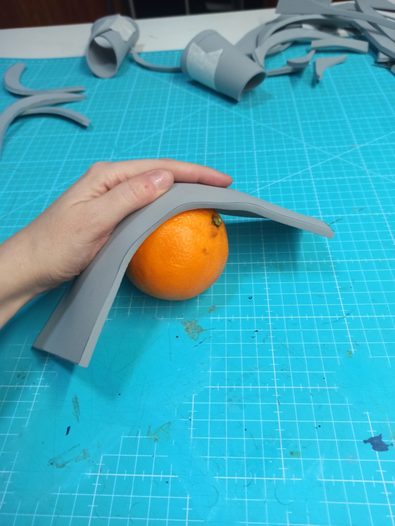 These pads were especially difficult to make as they have this intricate shape. In the original design you can see they’re made of several little pieces and that’s what I tried to emulate. With the base piece done, I added two layers of 2mm foam on top to smooth the volumes.