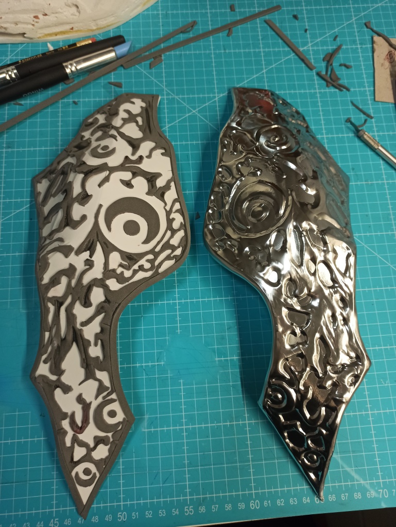 Gauntlets are mainly made using 2mm craft foam, so I added a layer of Worbla for them to keep the shape.