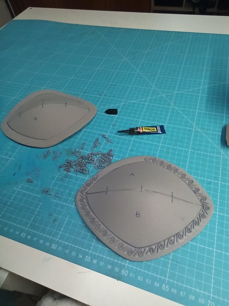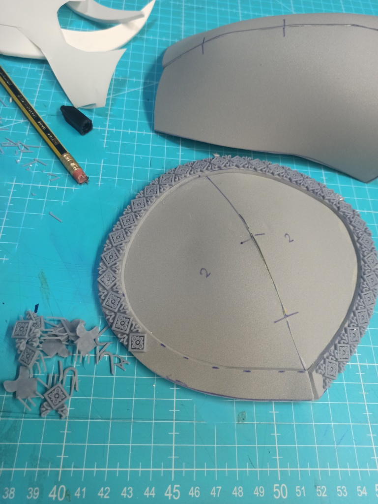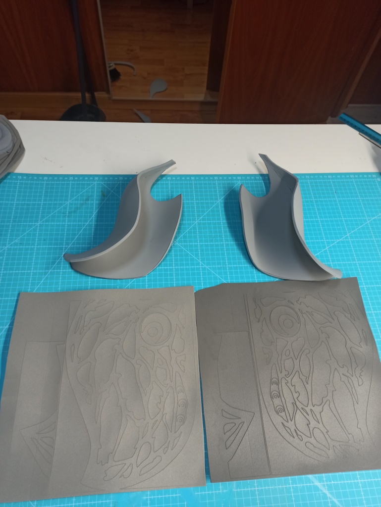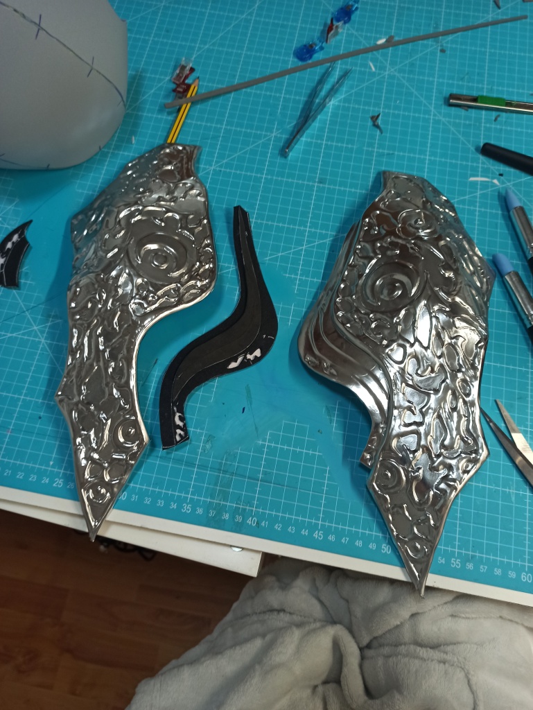 As the frontal pieces are very thin, I added some Worbla to give them stiffness.