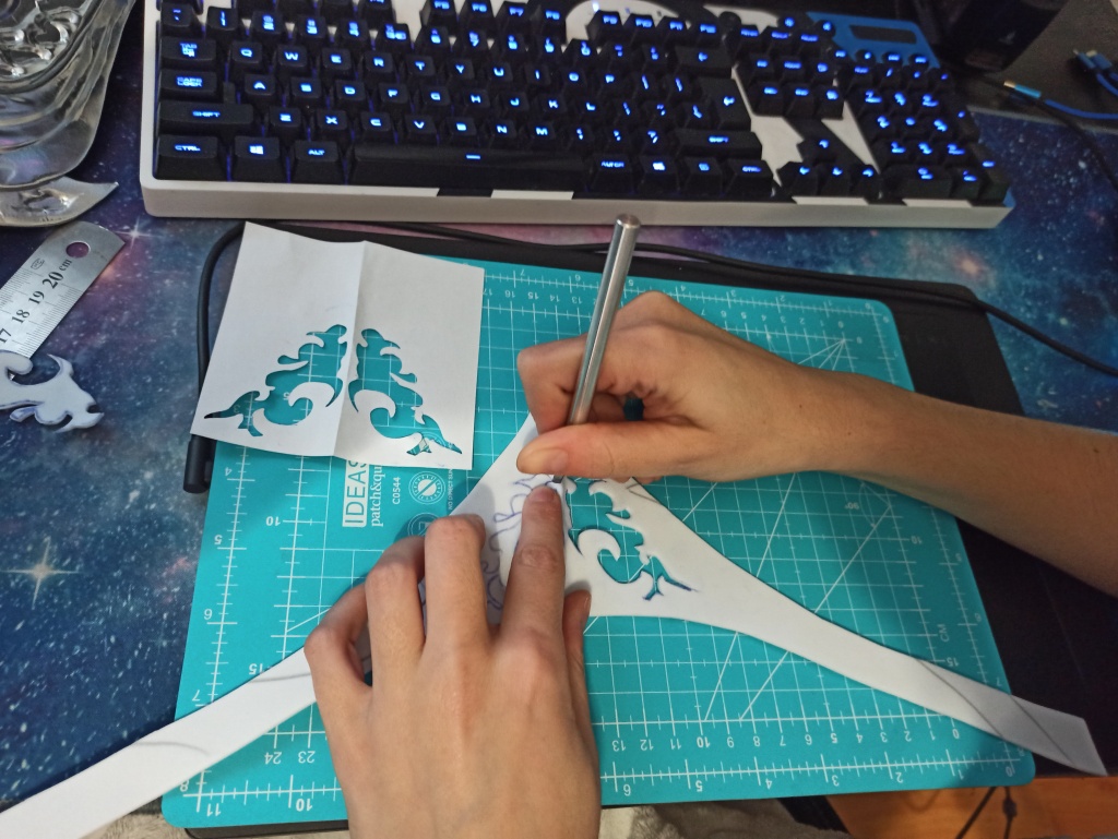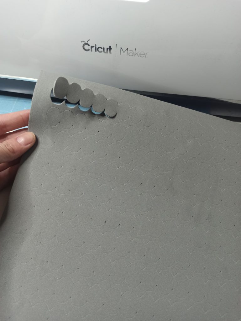 The whole scale mail is made of craft foam. I designed the scale rows and send them to my Cricut Maker 3.