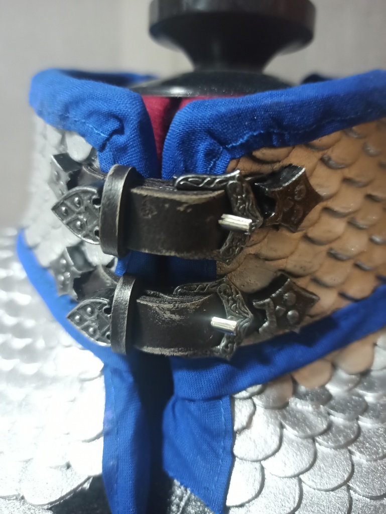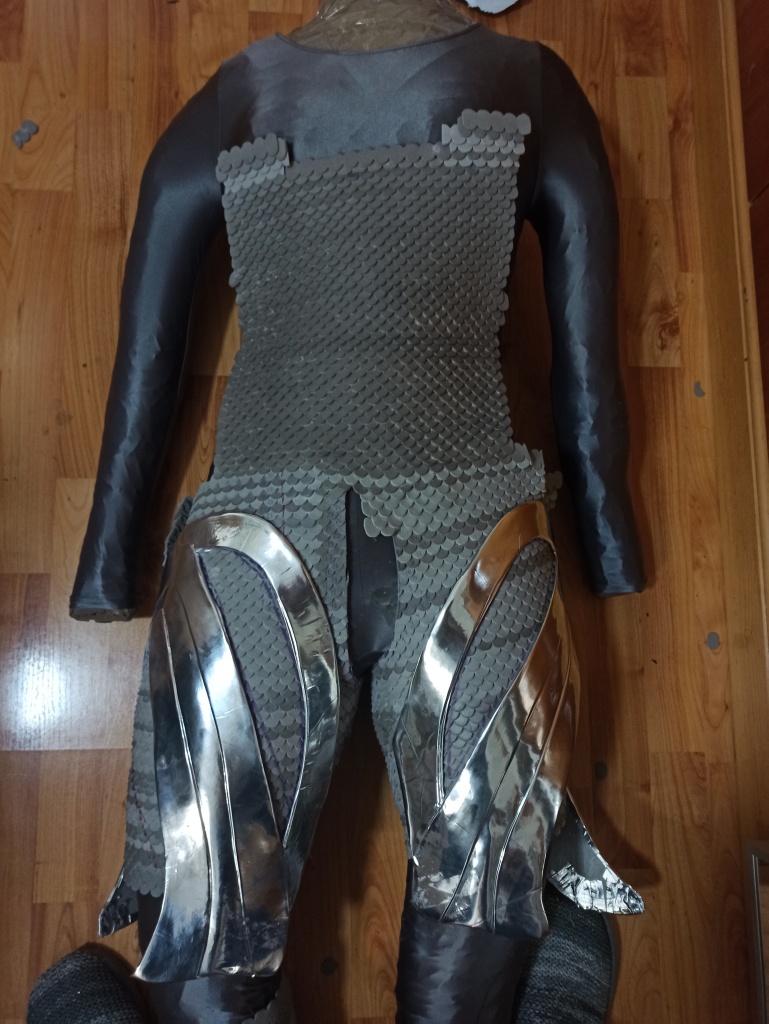 As the thigh armor in the original design looks so thin and lies tightly against the body, I directly glued it to the chain mail pants.