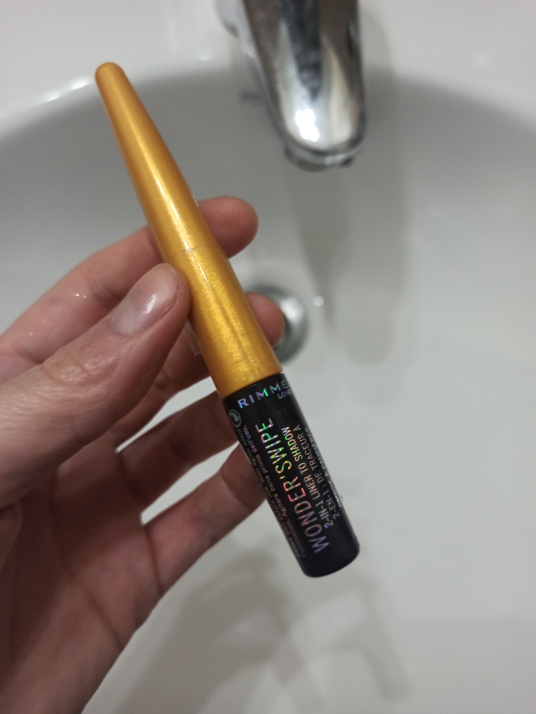 One thing you’ve asked me a lot about is the golden make-up details. They’re painted using Rimmel London’s Wonder Swipe liner.