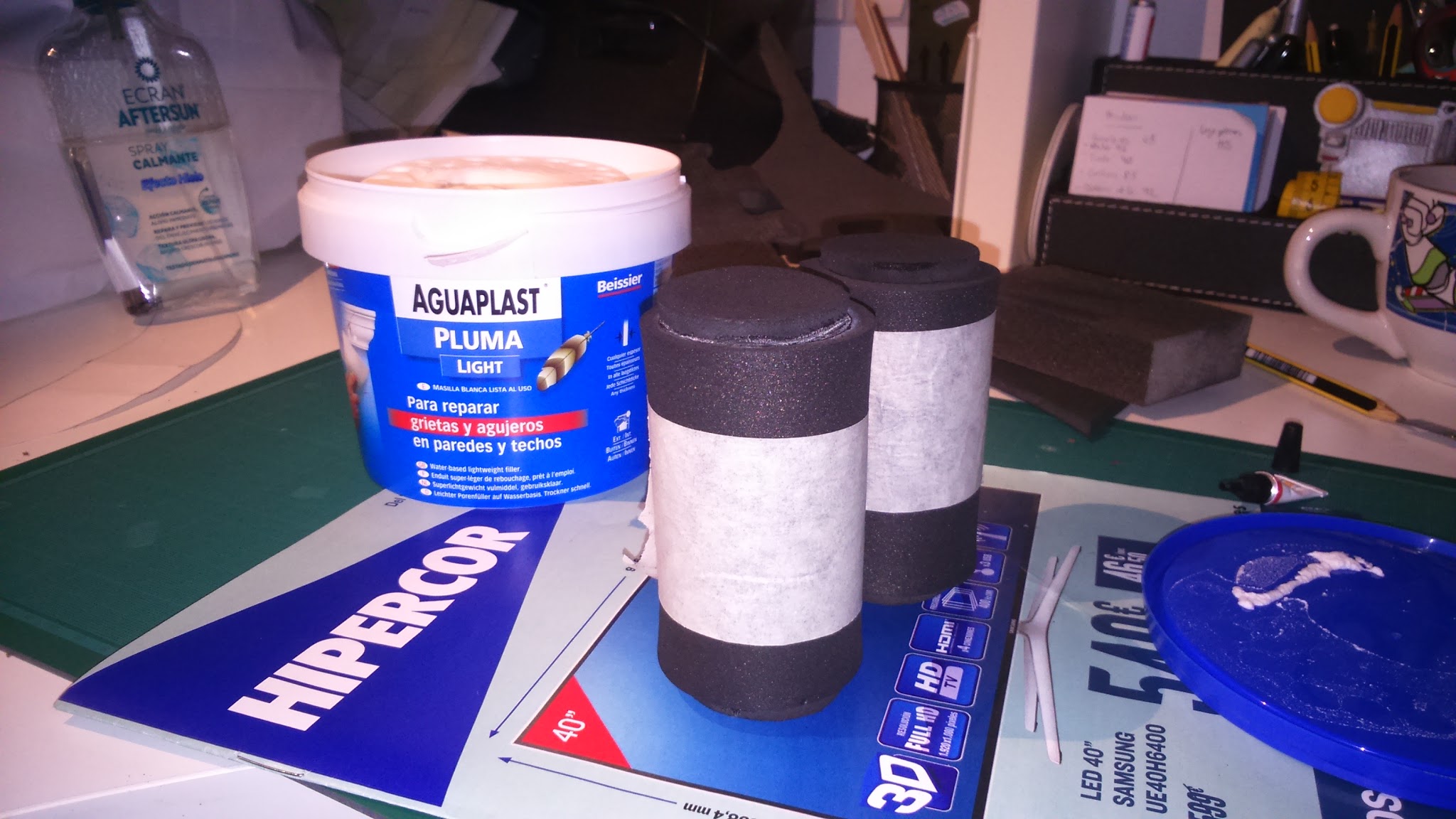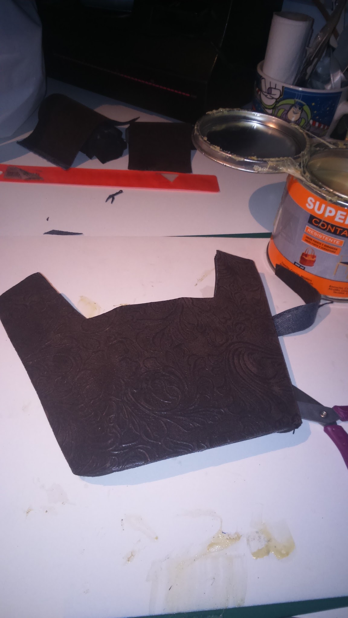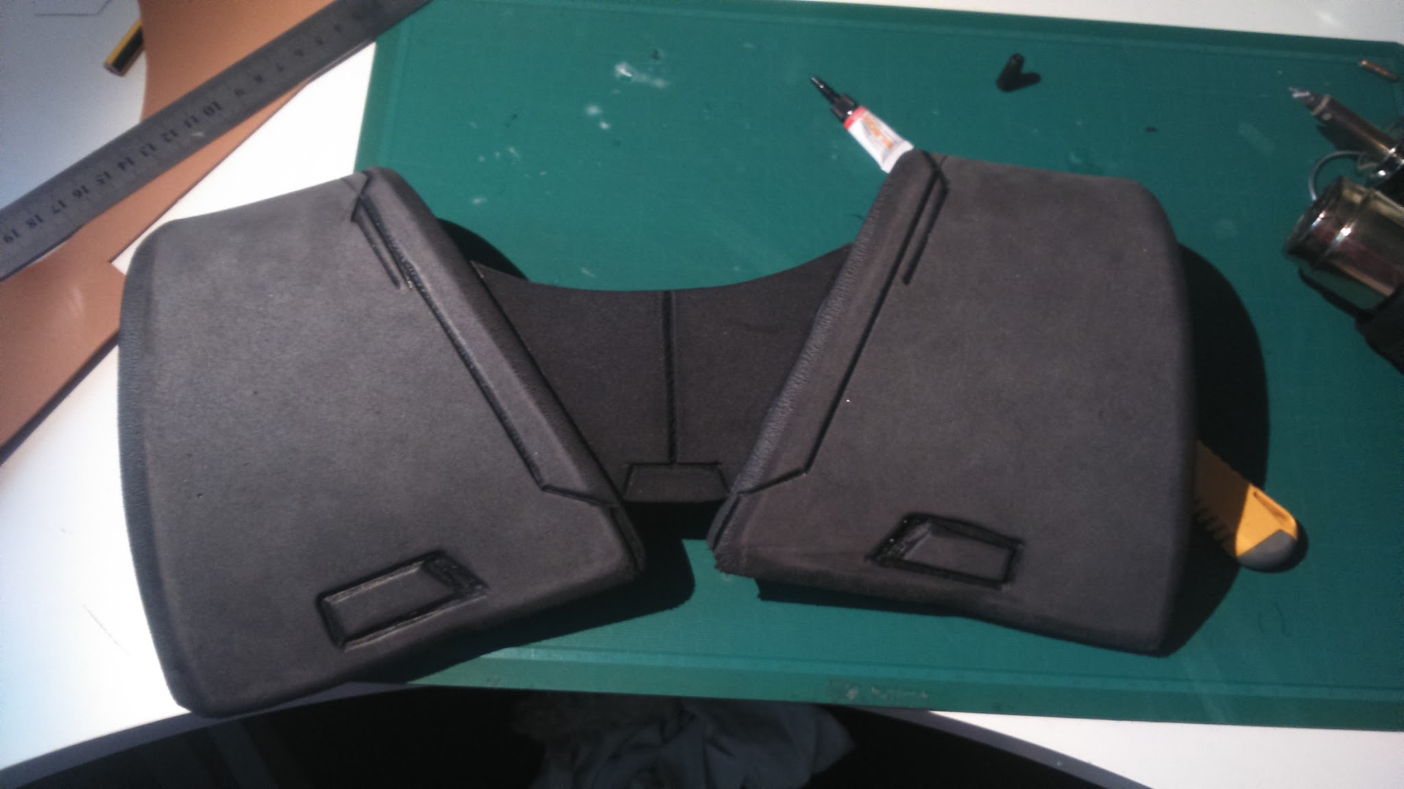 I made the cloack support. It has two 1cm foam pieces on the sides with relieves carved with the heat knife and a central 5mm piece. Of course, it’s adjusted to my shoulders shape.
