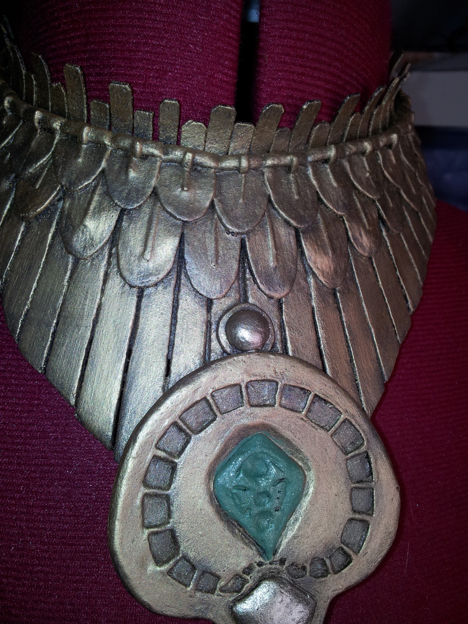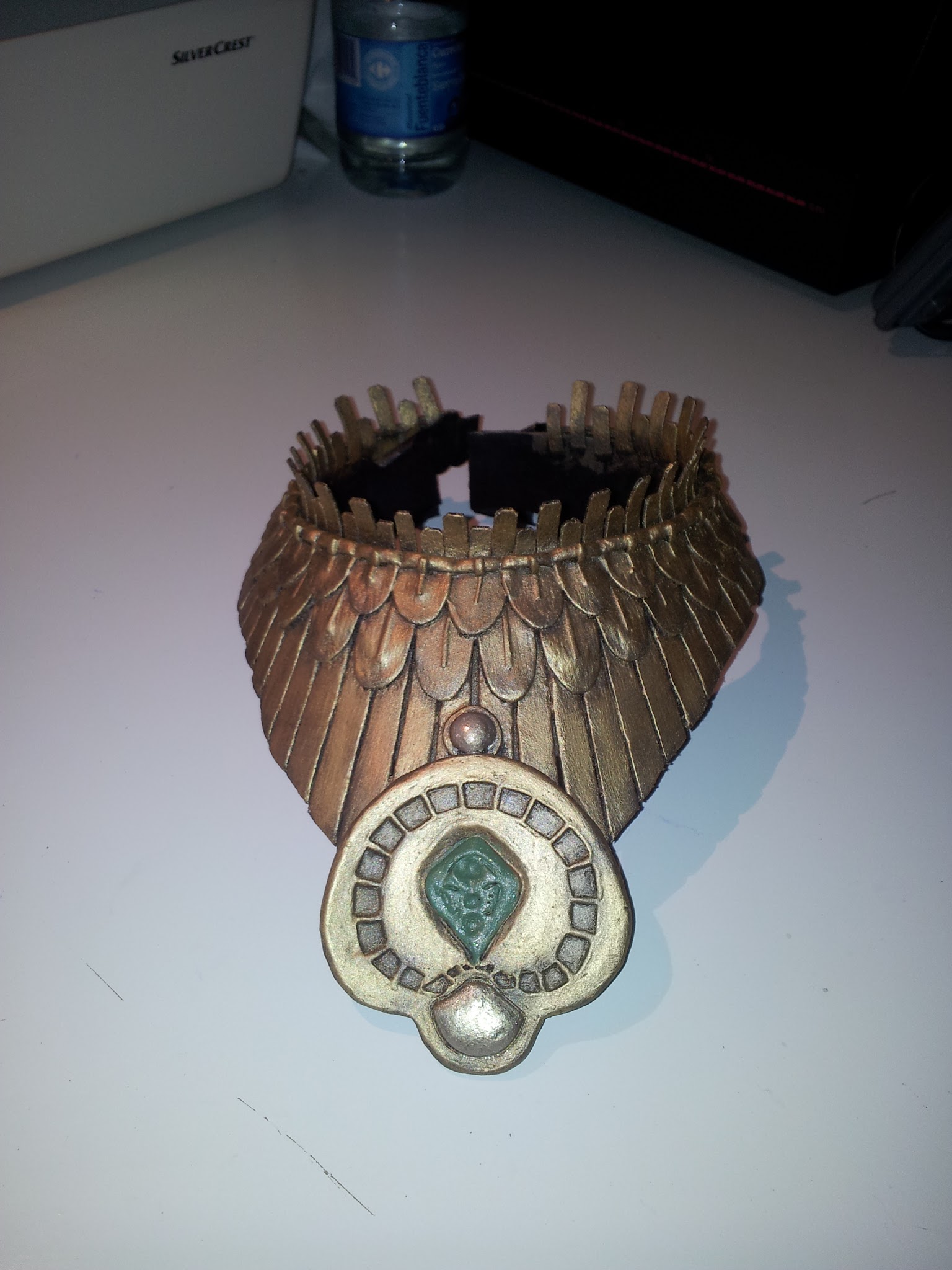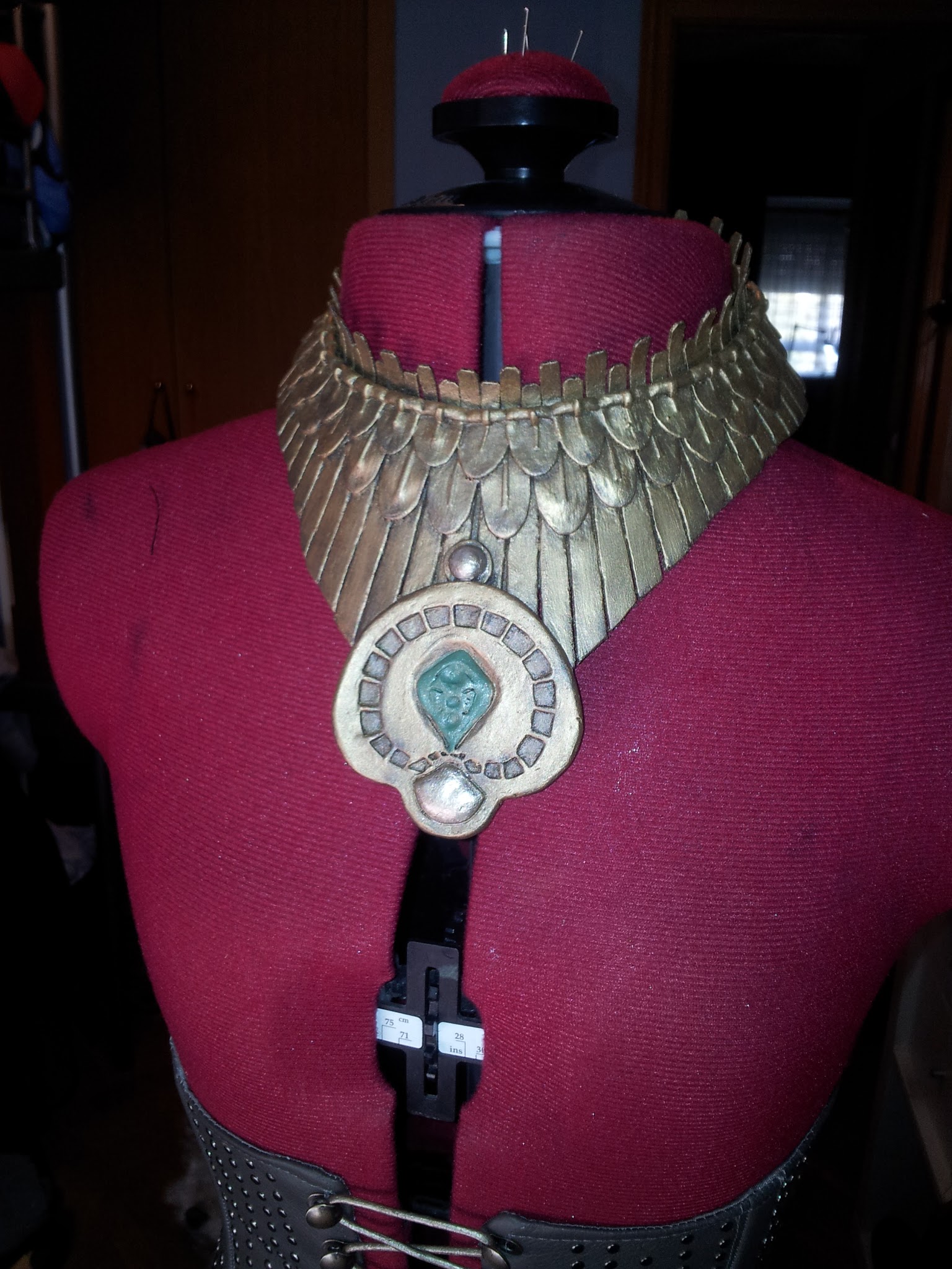 I made most of the necklace using Worbla but the pendant, that was the same from DAO and I already had its mold. I made the necklace base with a Worbla sheet and I shaped it with the heat gun.