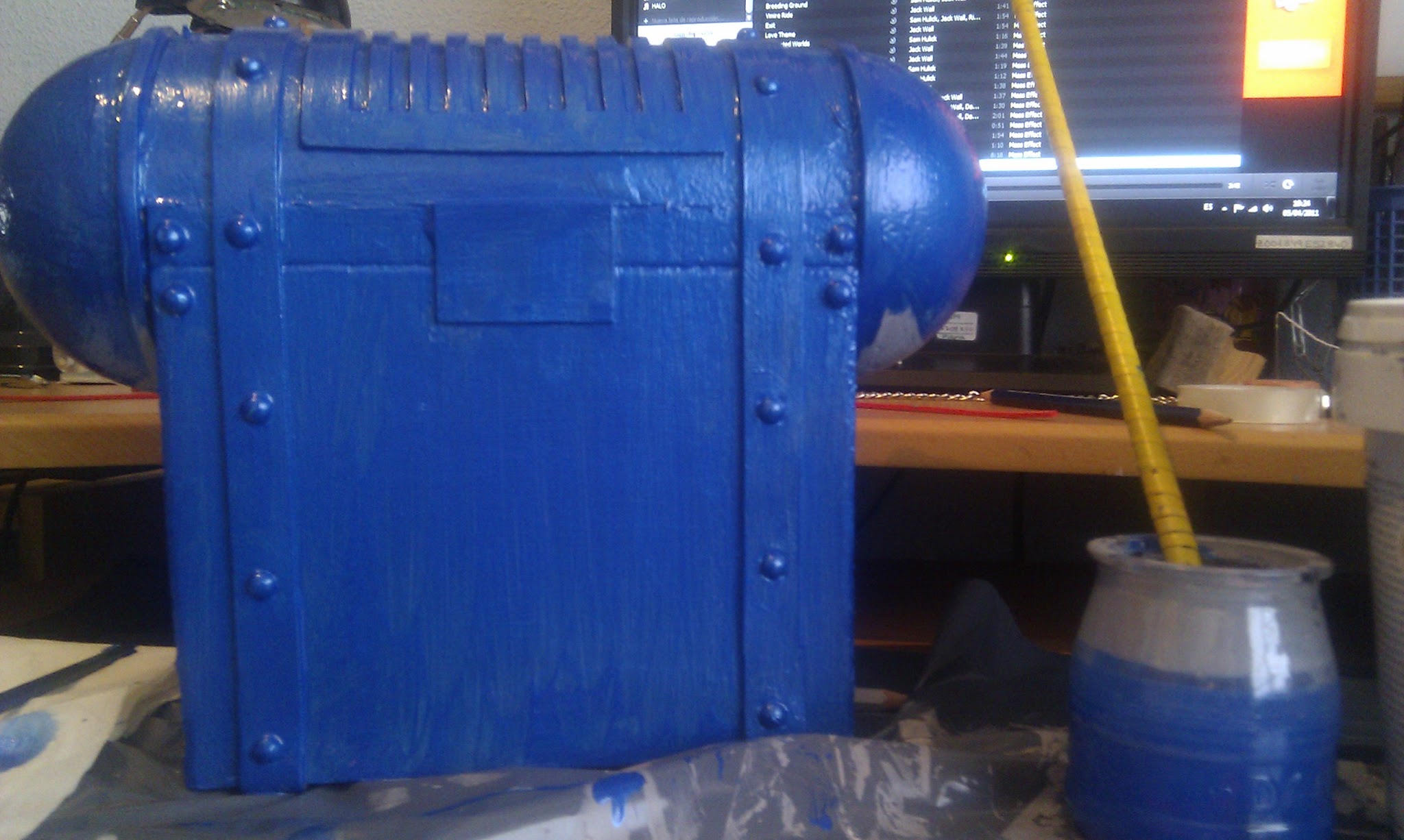 Y pintura acr铆lica en color azul metalizado.