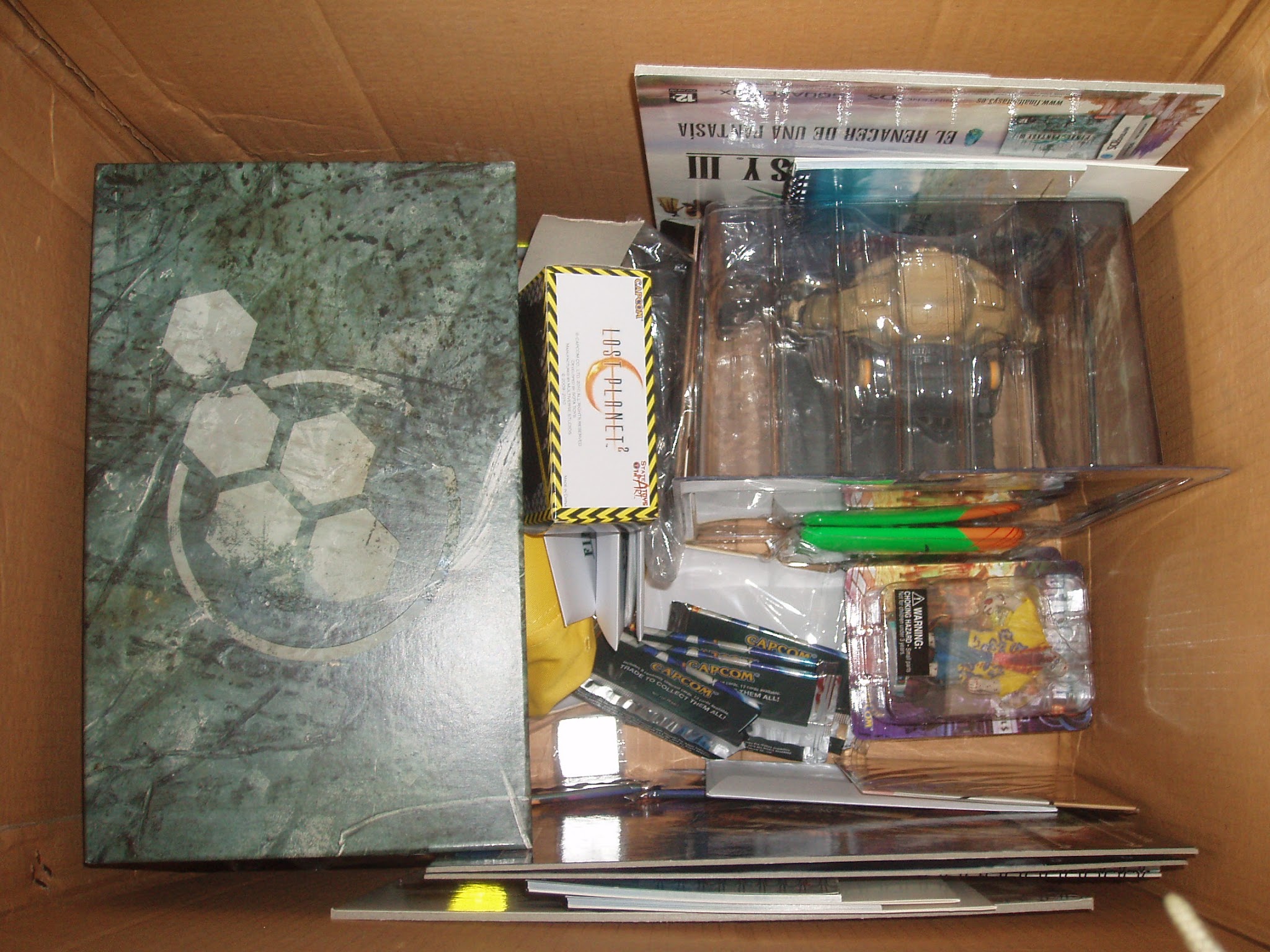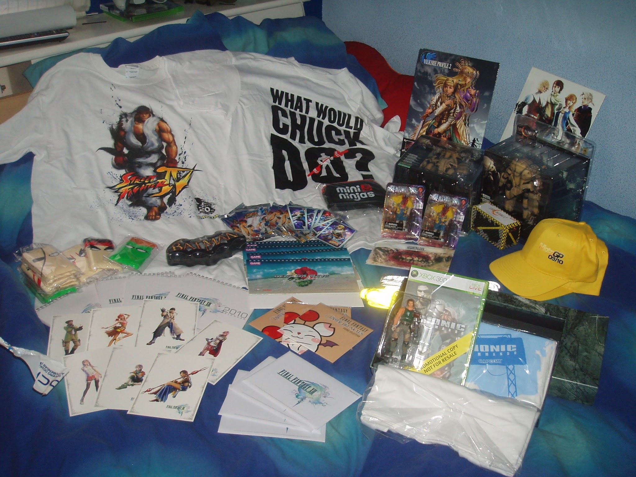 He llegado a casa del trabajo y me he encontrado una caja enorme llena de merchandising a repartir por nuestro “chachi-cosplay-grupo” que asisti贸 “streetfighterilmente” disfrazado al Gamefest. 隆隆Qu茅 pasada!!