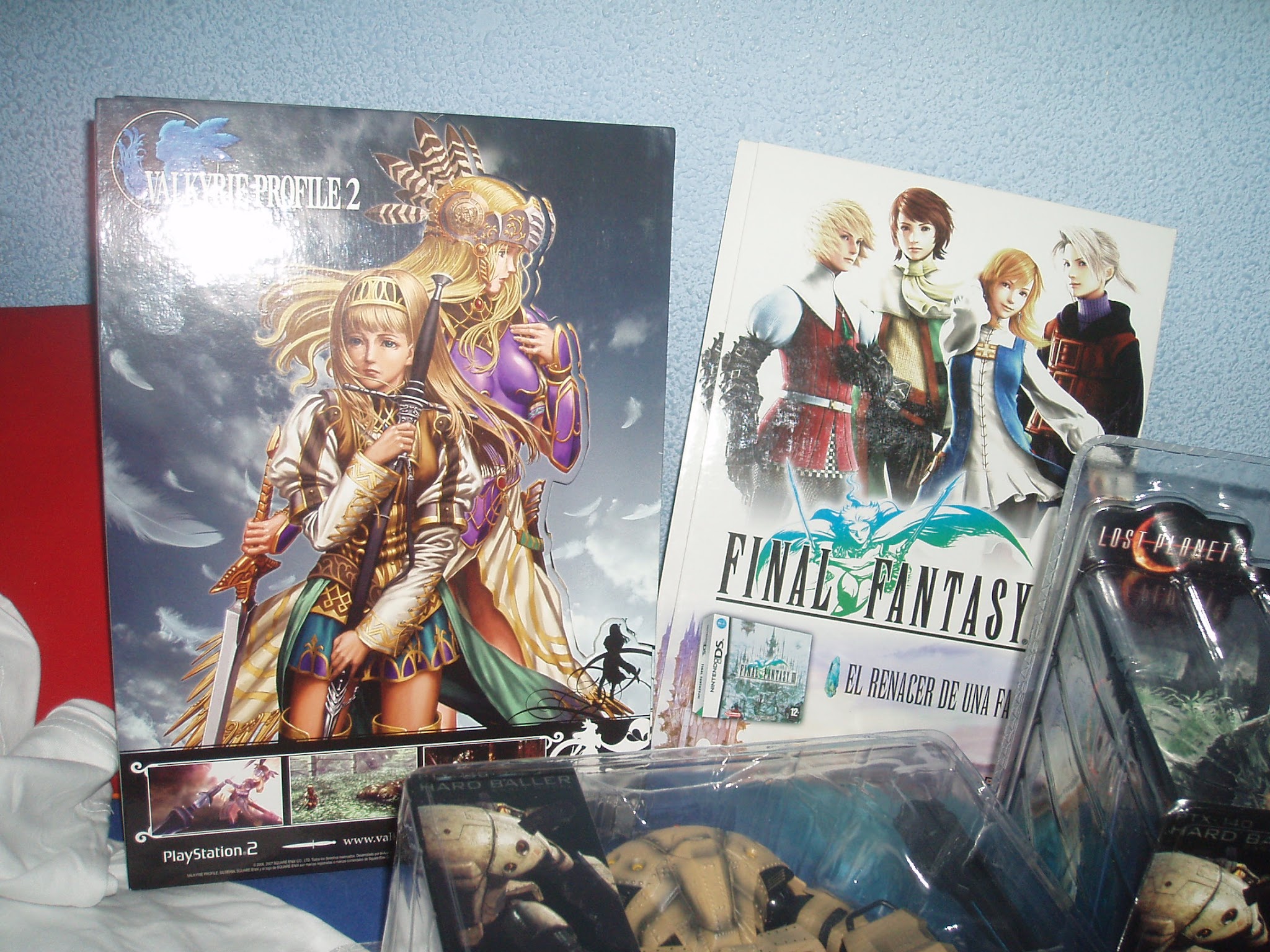 1 cart贸n de Valkyrie Profile II con los personajes en relieve. (Creo que s茅 de una a la que le va a encantar. Ejemmm jeemm Virchan ejemmm).
