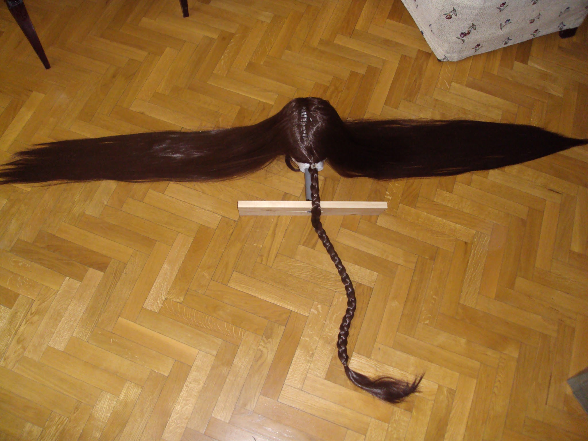 Y, como he tenido que separar el pelo en muchas capas, en la parte de atr谩s de la peluca se ven un mont贸n de calvas.