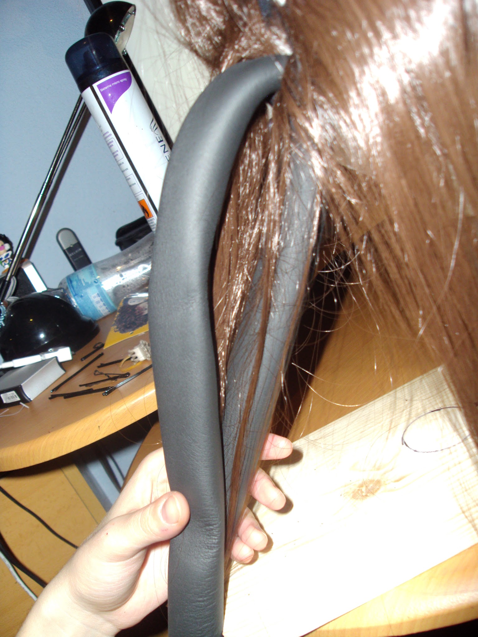 Pero parece una idea excelente si planeas usar la peluca para otros proyectos.(Para bien o para mal, la laca se lava, el pegamento no sale ni llorando)