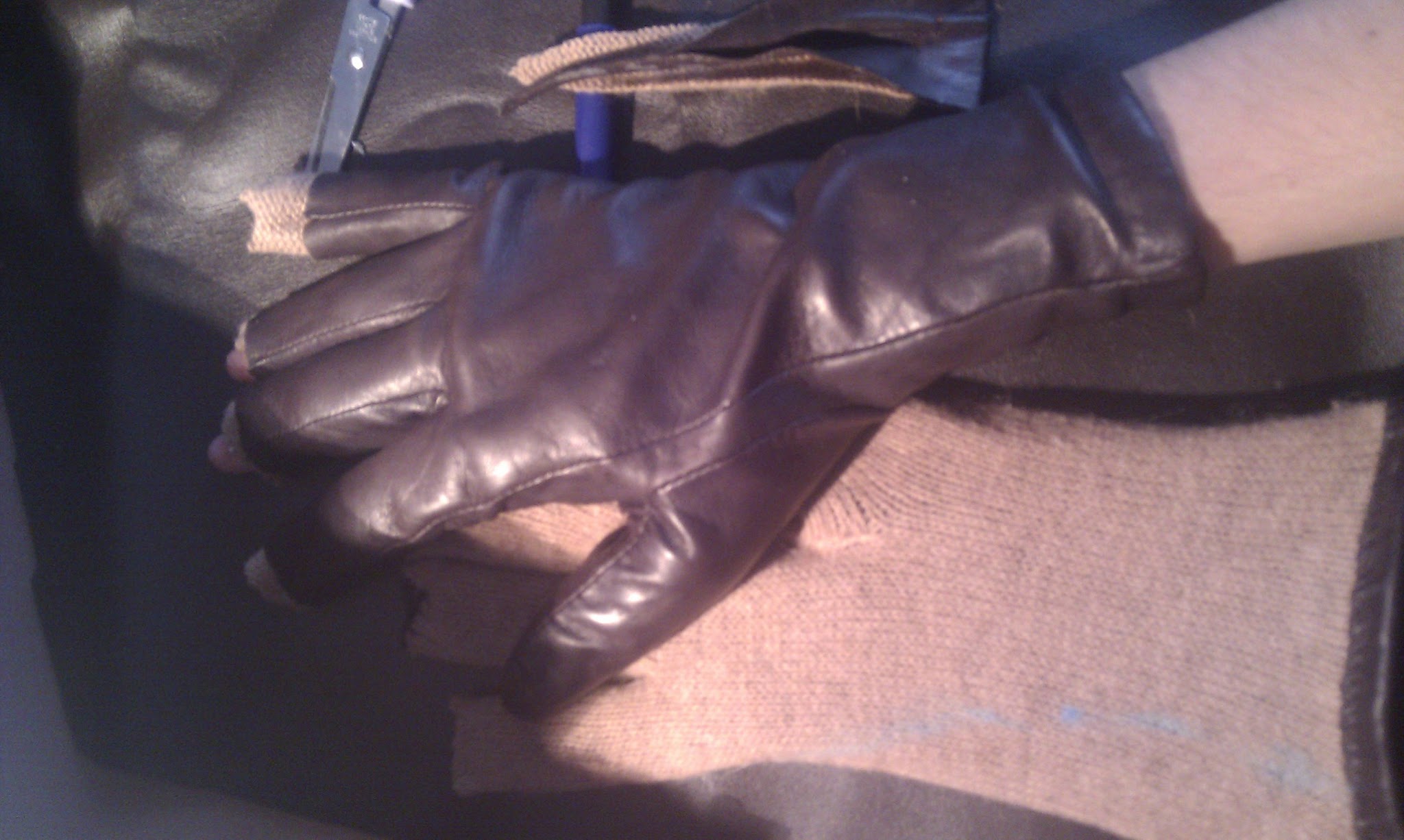 Compr茅 unos guantes cortos y les hice un apa帽o. Principalmente hice esta burrada porque ten铆a prisa por tener todo terminado para Cificom.
