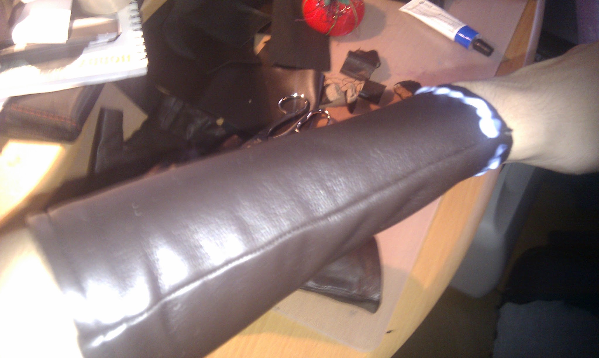 Y les a帽ad铆 el cacho que les faltaba para ser tan largos como quer铆a con polipiel marr贸n que ten铆a por casa (que me sobr贸 de cuando hice a Visas Marr). Lo pegu茅 con pegamento para tela.