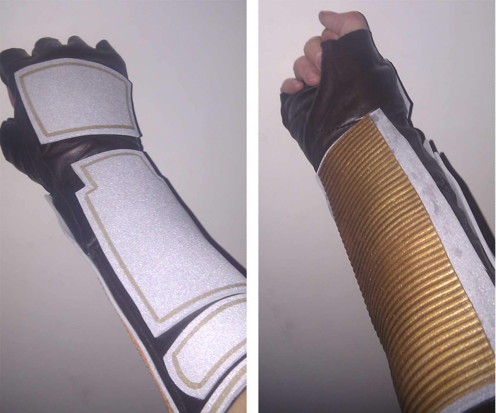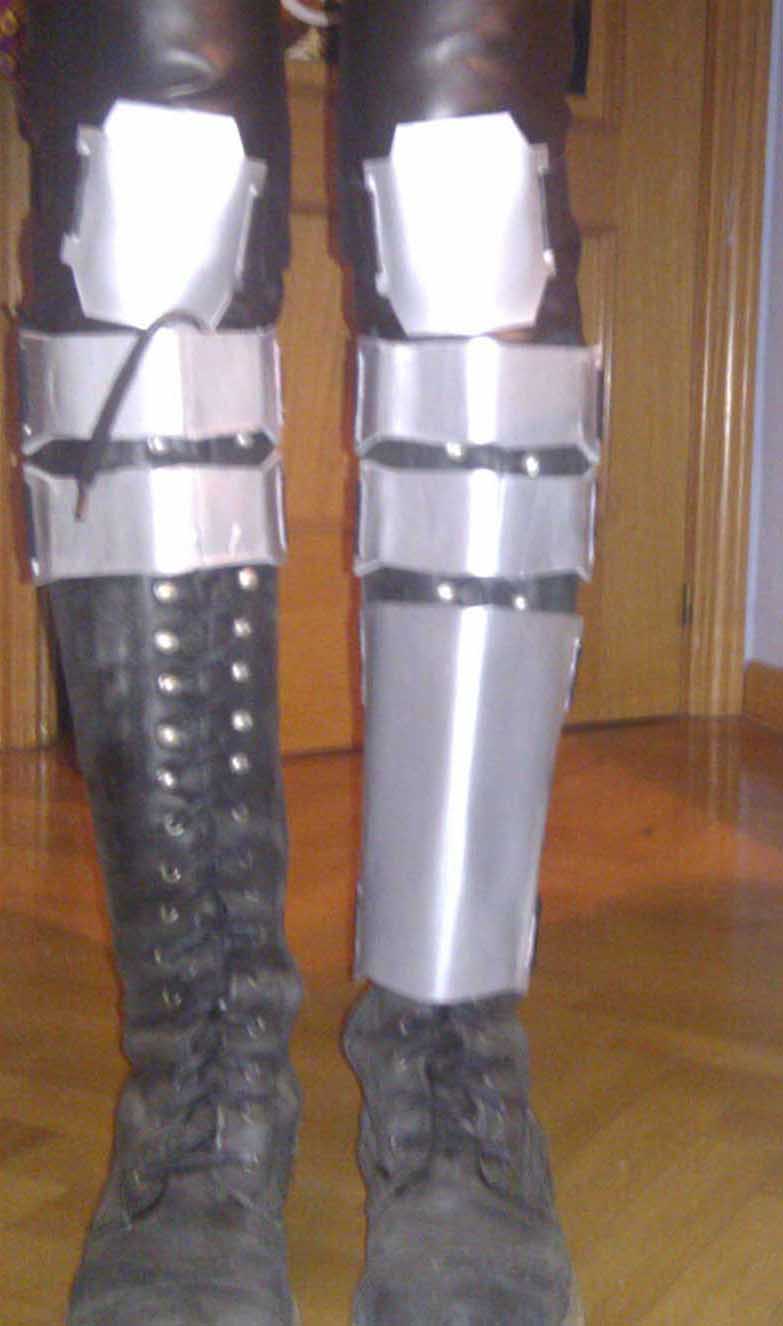 Las protecciones de las piernas est谩n hechas con f贸rex (PVC). Me hice unos patrones en papel y luego los pas茅 al material en cuesti贸n. Me bas茅 en un fanart porque en el tr谩iler tampoco se aprecian demasiado. Esto me pasa por cagaprisas. Pero, 隆eh!, con estas piezas estoy bastante satisfecha.