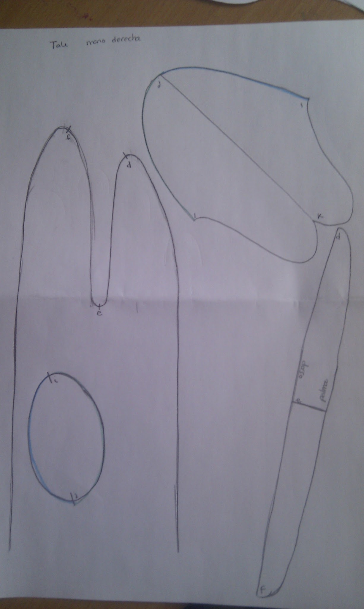 Al final ese trocito alargado de la derecha no me hizo falta porque los he hecho de vinilo y, con una tela tan el谩stica, no hay que tomarse tantas molestias, ejejeje (aunque seguramente hubiera quedado mejor; pero me daba pereza). Y he aqu铆 el patr贸n para la mano izquierda.