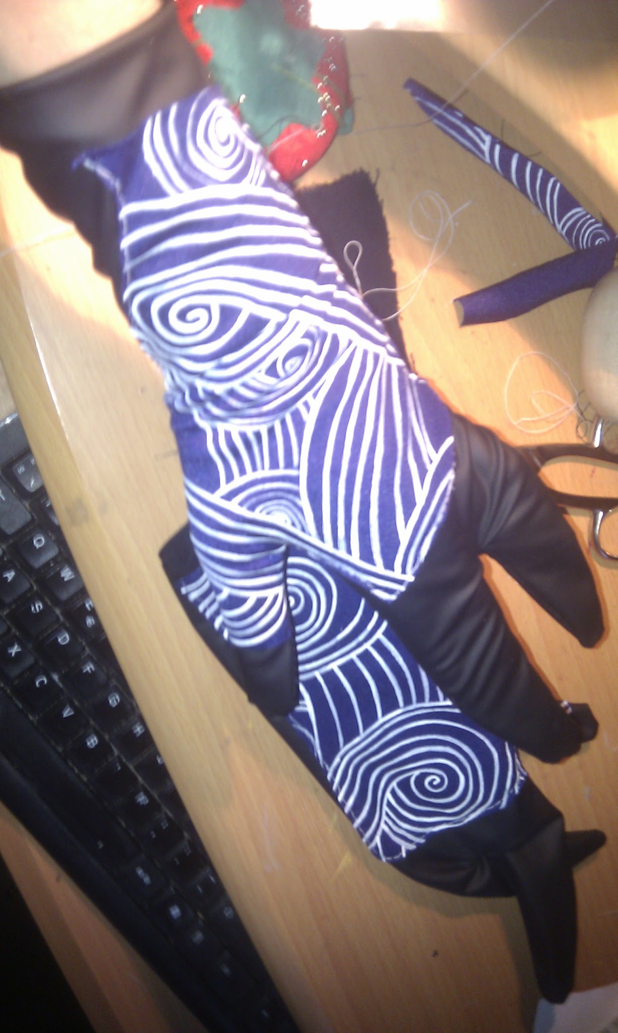 To make the boots I altered a regular bootcover pattern. And this is what came out.