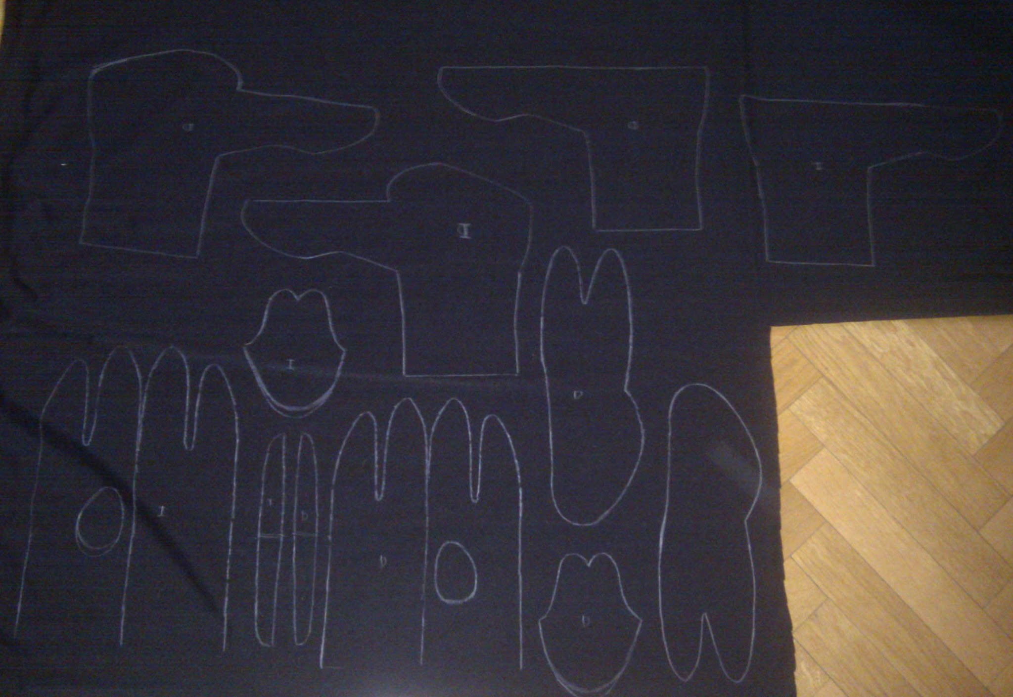 Os dejo aqu铆 la foto de cuando pas茅 todos los patrones a la tela para que ve谩is cu谩ntos hacen falta. Despu茅s de hacer los pies sobre el papel les a帽ad铆 un bulto en un lateral porque Tali tiene ah铆 un tercer dedo pegadito.